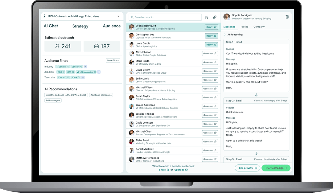 Stop spending hours hunting for prospects and writing outreach emails. Whether you're a small business owner or work with a sales agency, Landbase handles the time-consuming work of finding and engaging customers.