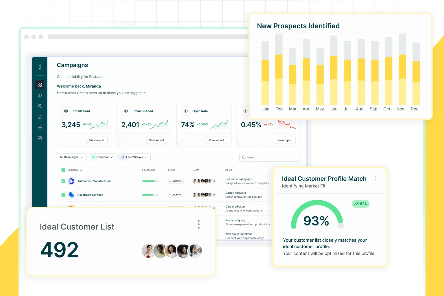 Comprehensive monitoring across web, social, and business channels identifies prospects actively showing purchase intent. Machine learning algorithms analyze multiple signal types to generate accurate intent scores.