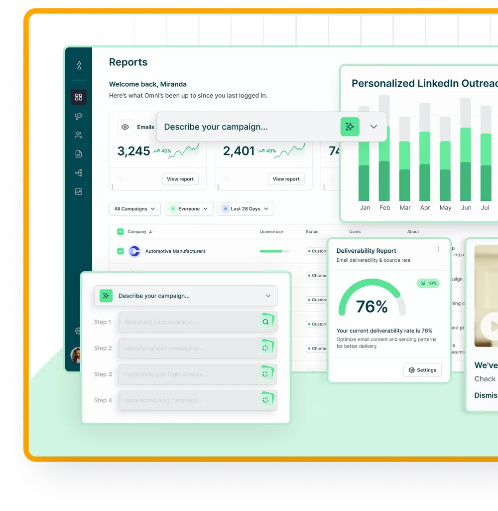 The all-in-one platform where AI agents power your outbound activities 24/7.